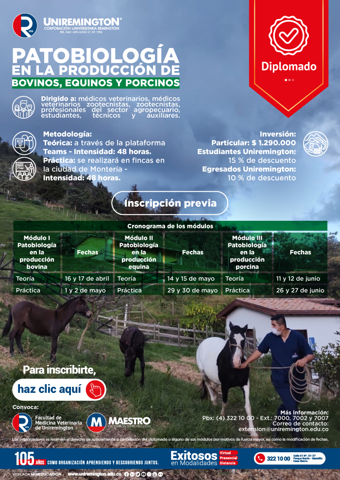 - Extensión rural: Apoyo a comunidades campesinas en producciones pecuarias. Mayor información sanchez@uniremington.edu.co